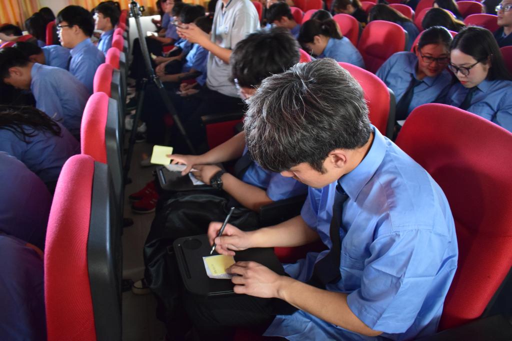 随后,检察系2017级全体本科生演唱了歌曲《祖国不会忘记》。他们铿锵有力的歌声使在场师生们热血沸腾、心潮澎湃,经久不息的掌声响彻整个会场。大家纷纷在寄语小卡片上留言,表达对英雄们的无比感激之意和崇敬之情。