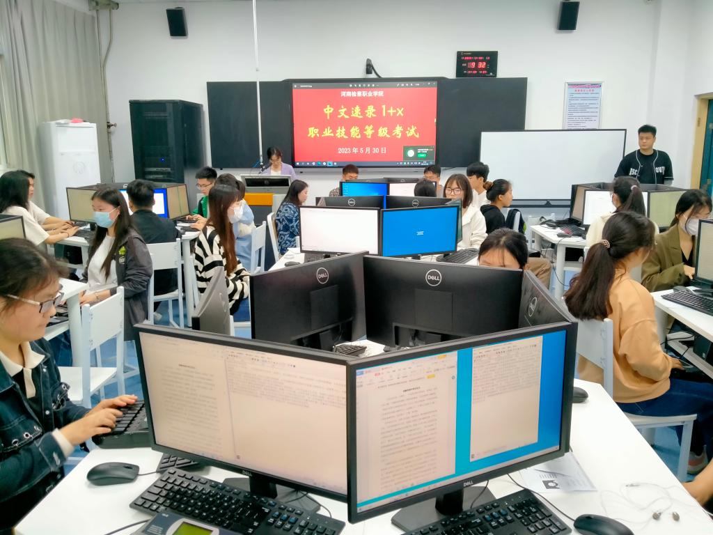 2023年5月30日,中文速录1+X职业技能等级考试在beat365官网举行,共有来自检察事务、司法助理、司法警务专业的40名同学参加考试。