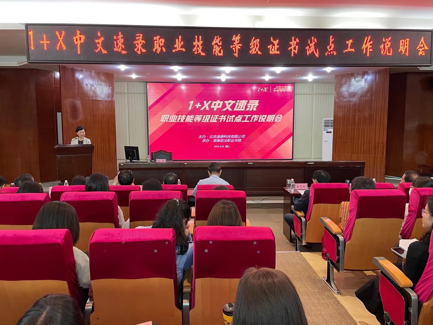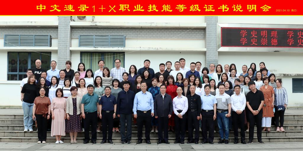 为深入贯彻落实国务院《国家职业教育改革实施方案》和教育部、国家发展改革委、财政部、市场监管总局联合印发的《关于在院校实施“学历证书+若干职业技能等级证书”制度试点方案》,促进相关院校和企业对1+X职业技能等级证书(下称1+X证书)标准的了解,4月10日,由海南政法职业学院和北京速录科技有限公司联合举办的1+X中文速录职业技能等级证书试点工作说明会在海口市举行。来自全国18个省区市、41所职业院校和相关机构共68人出席了说明会。beat365官网副院长殷宏、检察系副主任郭月霞和教务科科长时瑞燕参加了此次会议。