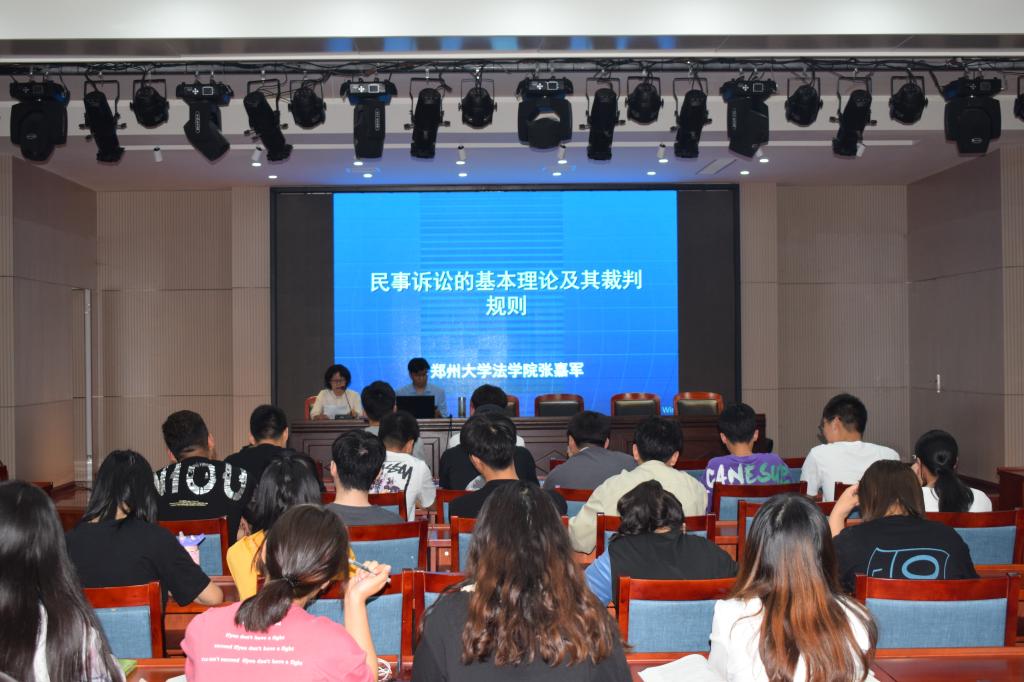 张嘉军教授是中国司法案例研究中心执行主任(河南省高级人民法院与郑州大学联合成立),最高人民检察院检察公益诉讼研究基地--郑州大学检察公益诉讼研究院执行院长,同时一直坚持在郑州大学法学院担任民法讲课。讲座上,张嘉军教授为我们讲解了民事诉讼的基本程序和基本理论,并通过日常生活中常见的问题和现场的同学们共同探讨了在实际生活中如何通过民事诉讼解决纠纷,例如路边的钱能不能捡?捡到后如何处理?以及买车买房遇到问题时如何通过民诉程序解决问题等等。张教授带着同学们用法律逻辑思维讨论日常生活中遇到的问题以及如何处理好,这次的讲座不仅仅是让我们用听的懂得方法学习和拓展民事诉讼的基本理论及裁判规则,更是带给我们用法律思维考虑日常生活背后的法理知识的一种思维模式。